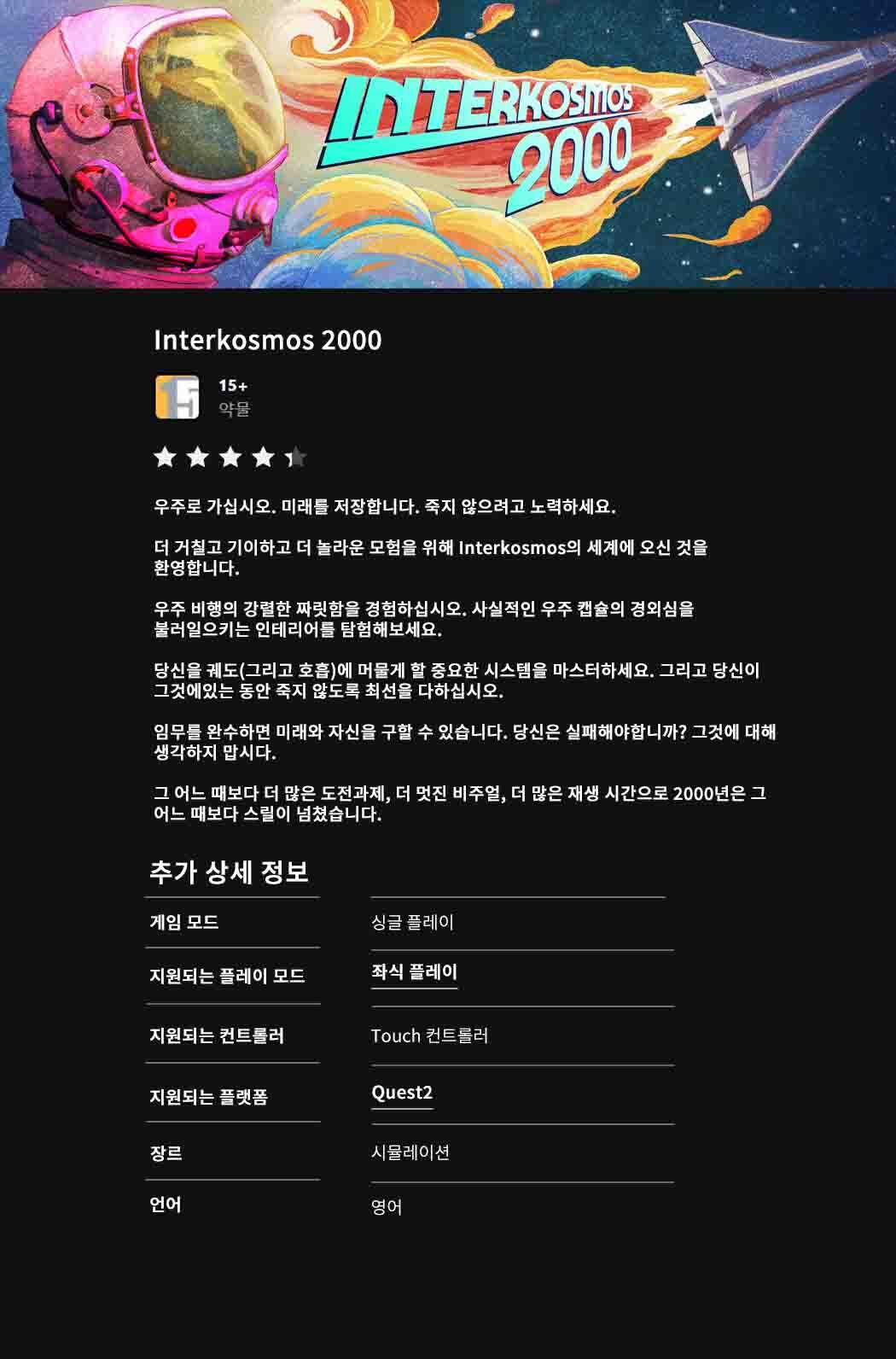 메타퀘스트2 VR 콘텐츠 Interkosmos 2000 콘텐츠 내용확인 상품입니다. / 배송비 : 무료