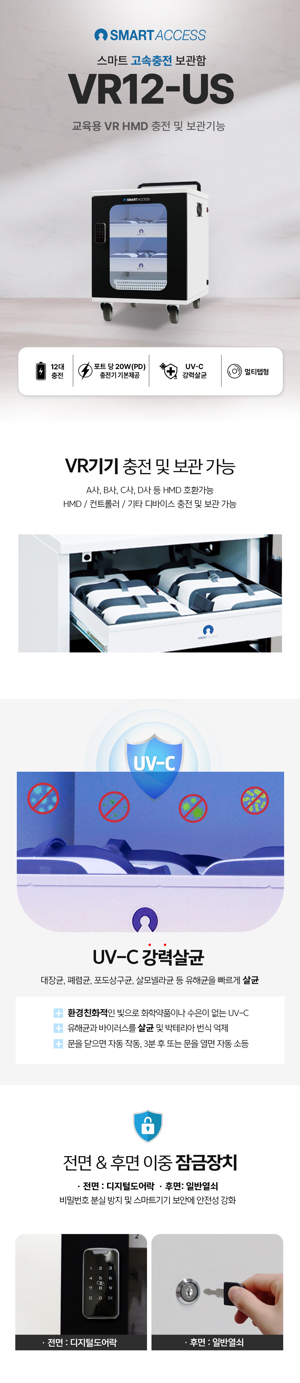 • 올아이피 솔리드싱크 VR12-US VR기기 충전보관함 UV-C 살균 디지털도어락